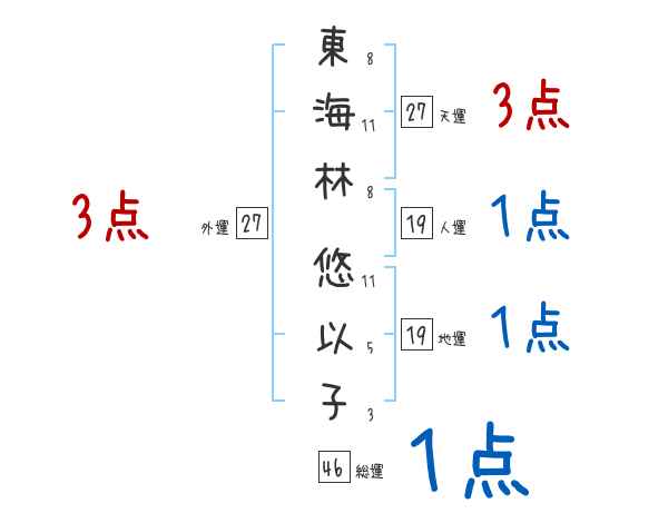 総運![]() | 東海林悠以子さんの総運は46画の1つ星!迷走することが多く苦労するかも。目先のことにとらわれないように。 あなたの人生を表す1番重要な運勢です。生涯を通じて影響する総合運となり、主に50歳以降の晩年期に影響を及ぼします。 |