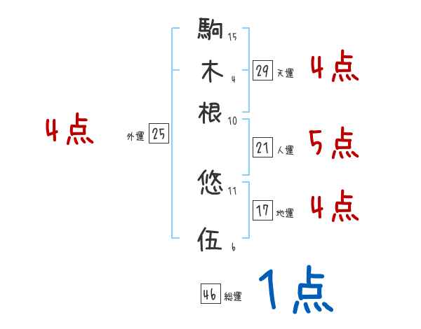 駒木根悠伍さんの画数の鑑定結果
