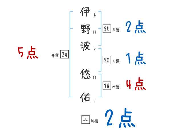 伊野波悠佑さんの画数の鑑定結果