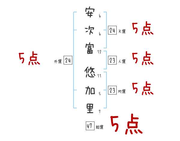 安次富悠加里さんの画数の鑑定結果