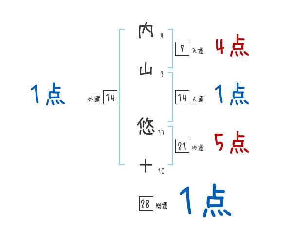内山悠十さんの画数の鑑定結果