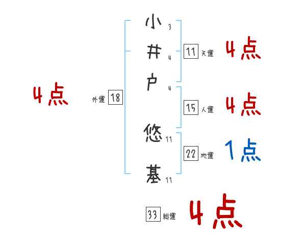 小井戸悠基さんの画数の鑑定結果