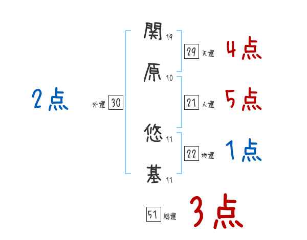 関原悠基さんの画数の鑑定結果