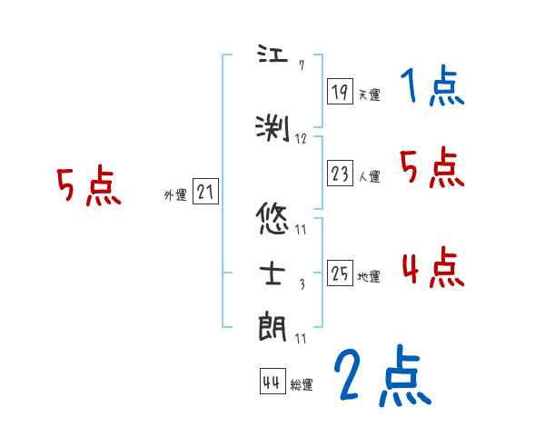 外運![]() | 江渕悠士朗さんの外運は21画の5つ星!統率力がある。独立し成功する。名誉を手に入れる。 生活面を象徴する運勢です。外部から受ける影響力を表し、結婚運、家庭運や職場、環境への順応性を表します。 |