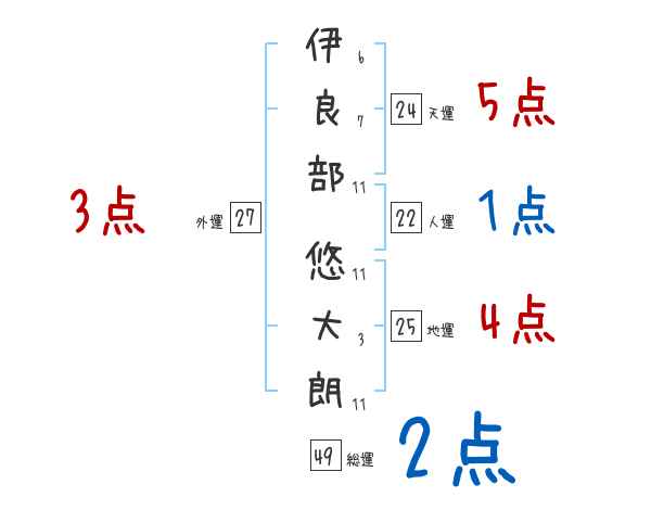 伊良部悠大朗さんの画数の鑑定結果