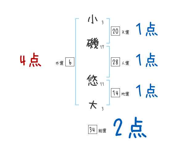 小磯悠大さんの画数の鑑定結果