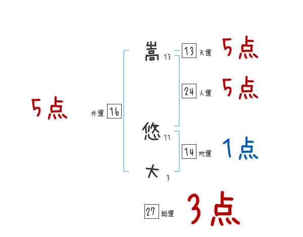 嵩悠大さんの画数の鑑定結果