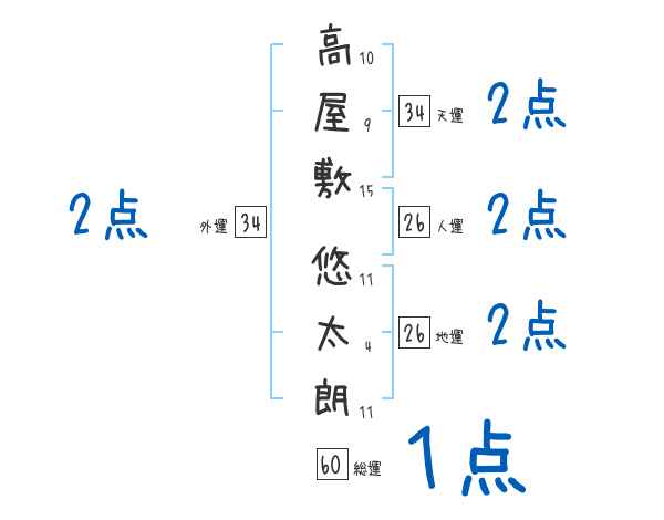 高屋敷悠太朗さんの画数の鑑定結果
