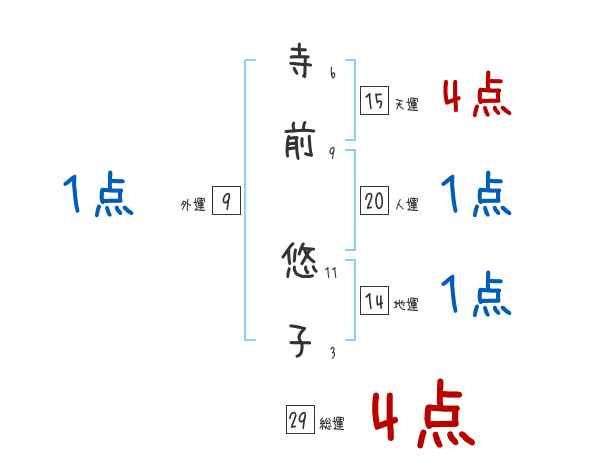 寺前悠子さんの画数の鑑定結果