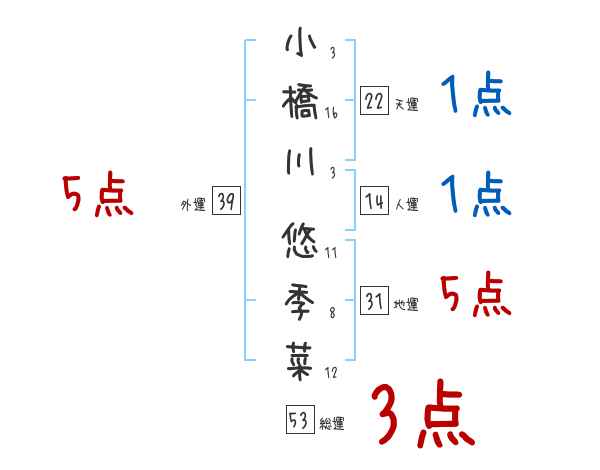 小橋川悠季菜さんの画数の鑑定結果