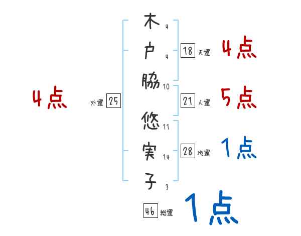 木戸脇悠実子さんの画数の鑑定結果