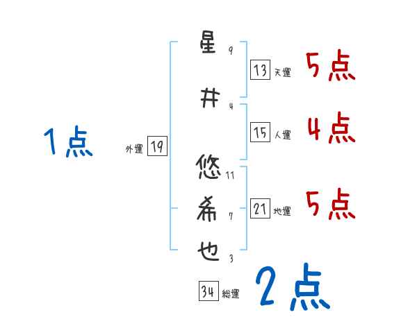 星井悠希也さんの画数の鑑定結果