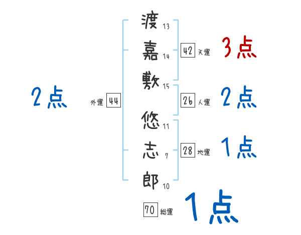 渡嘉敷悠志郎さんの画数の鑑定結果
