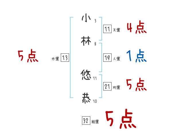 小林悠恭さんの画数の鑑定結果