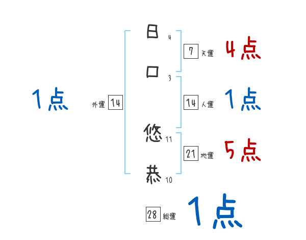 日口悠恭さんの画数の鑑定結果