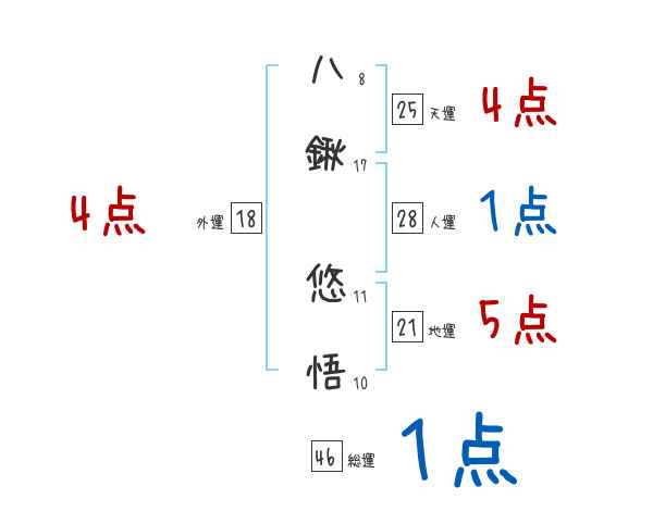 八鍬悠悟さんの画数の鑑定結果