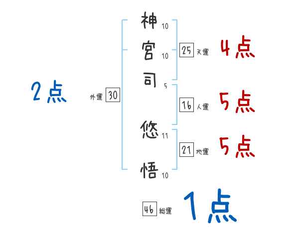 神宮司悠悟さんの画数の鑑定結果