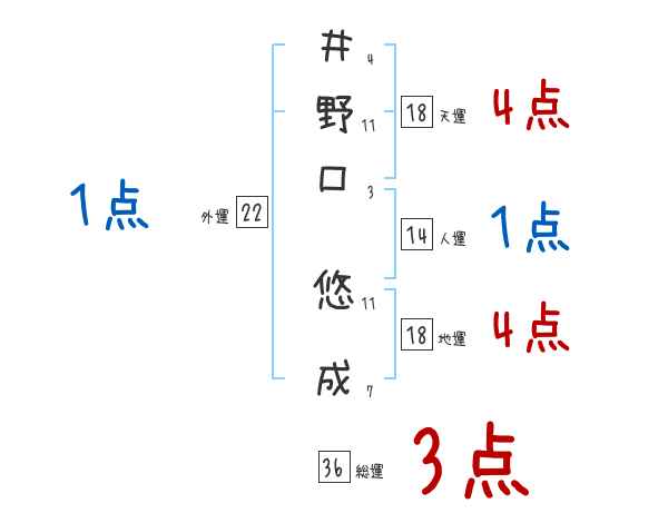 井野口悠成さんの画数の鑑定結果