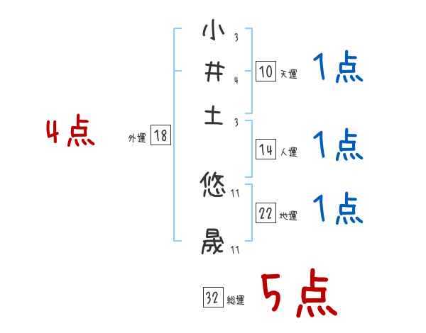 小井土悠晟さんの画数の鑑定結果