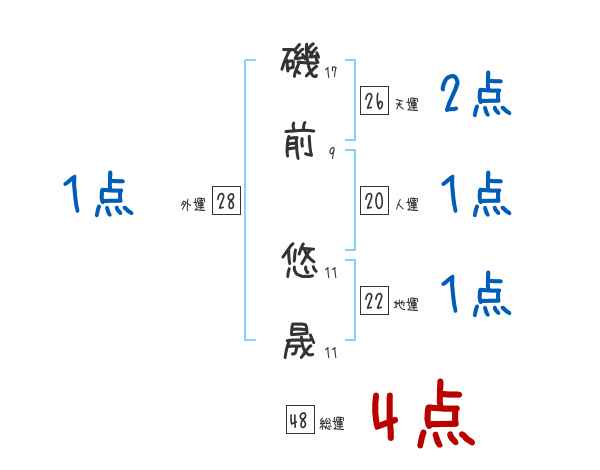 磯前悠晟さんの画数の鑑定結果