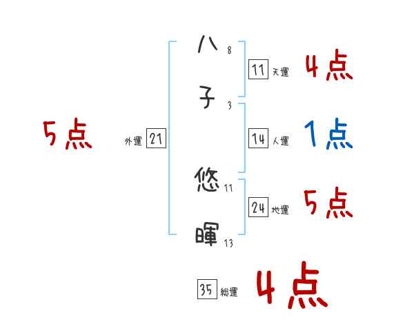 八子悠暉さんの画数の鑑定結果