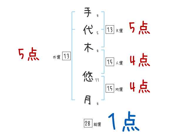 手代木悠月さんの画数の鑑定結果
