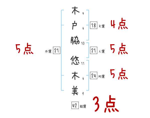 外運![]() | 木戸脇悠木美さんの外運は21画の5つ星!統率力がある。独立し成功する。名誉を手に入れる。 生活面を象徴する運勢です。外部から受ける影響力を表し、結婚運、家庭運や職場、環境への順応性を表します。 |