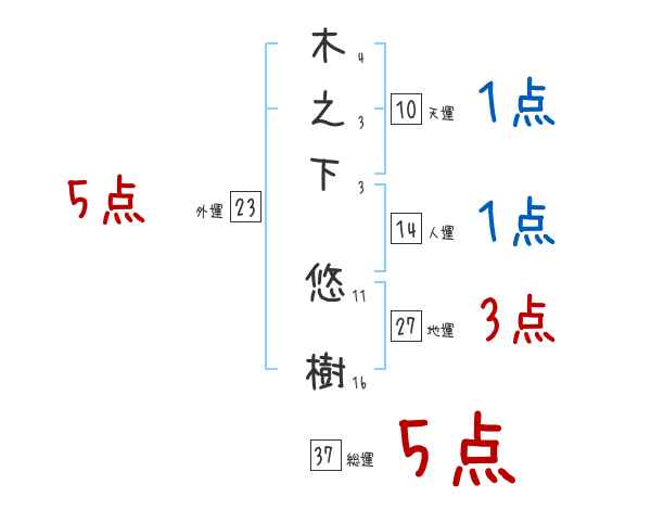 総運![]() | 木之下悠樹さんの総運は37画の5つ星!努力家で順応性に優れる。現実的な考え方ができ忠実に物事をこなす。 あなたの人生を表す1番重要な運勢です。生涯を通じて影響する総合運となり、主に50歳以降の晩年期に影響を及ぼします。 |