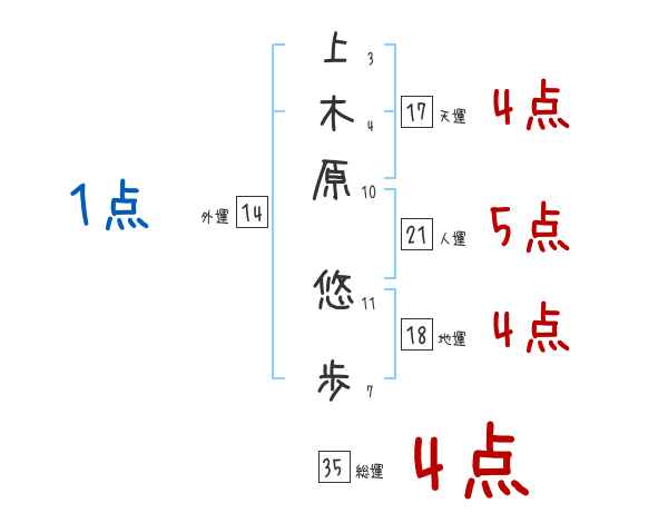 上木原悠歩さんの画数の鑑定結果
