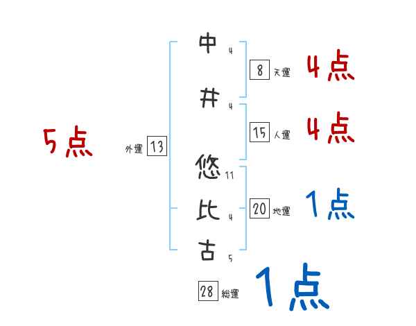 中井悠比古さんの画数の鑑定結果