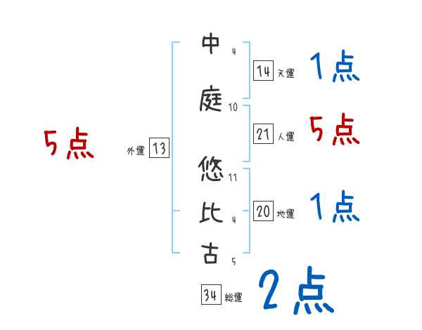 中庭悠比古さんの外運は13画の5つ星
