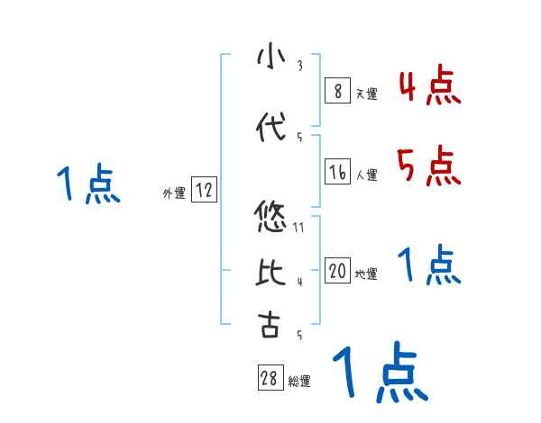 小代悠比古さんの画数の鑑定結果