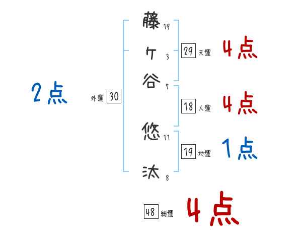藤ヶ谷悠汰さんの画数の鑑定結果