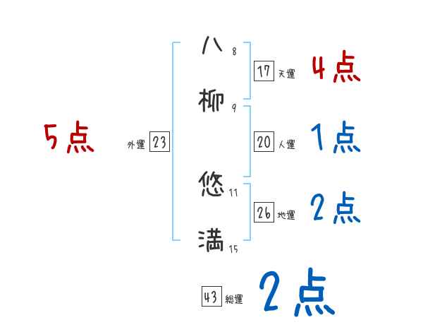 八柳悠満さんの画数の鑑定結果