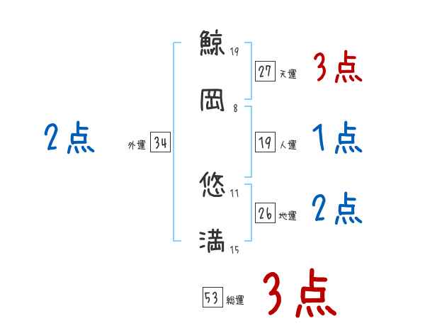 鯨岡悠満さんの画数の鑑定結果