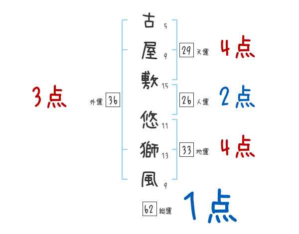古屋敷悠獅風さんの画数の鑑定結果