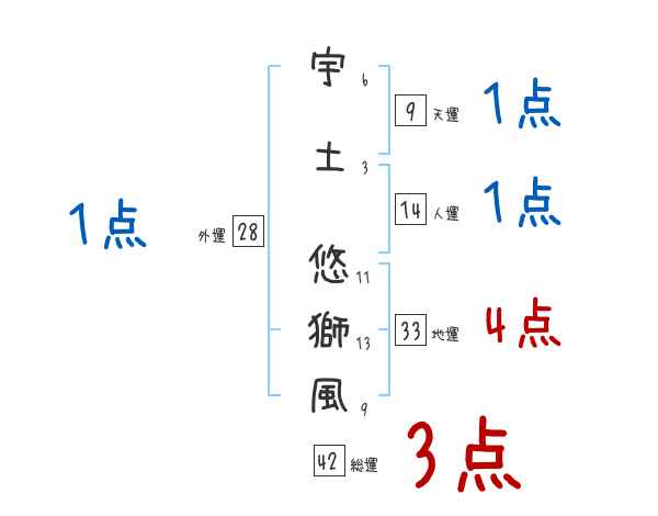 宇土悠獅風さんの画数の鑑定結果