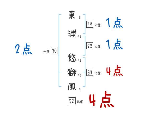 東浦悠獅風さんの画数の鑑定結果
