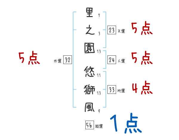 里之園悠獅風さんの画数の鑑定結果