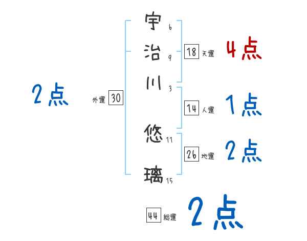 総運![]() | 宇治川悠璃さんの総運は44画の2つ星!誠実で慎重な性格。物事を考えすぎないように注意しましょう。 あなたの人生を表す1番重要な運勢です。生涯を通じて影響する総合運となり、主に50歳以降の晩年期に影響を及ぼします。 |