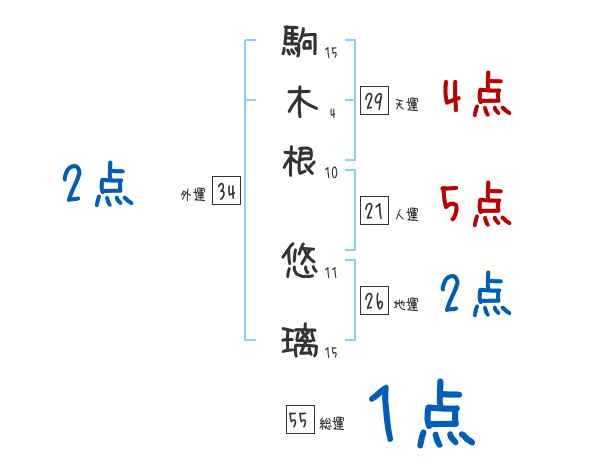 駒木根悠璃さんの画数の鑑定結果