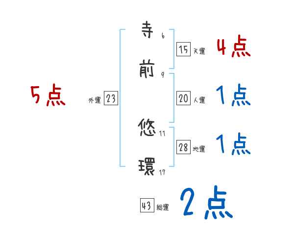 寺前悠環さんの画数の鑑定結果