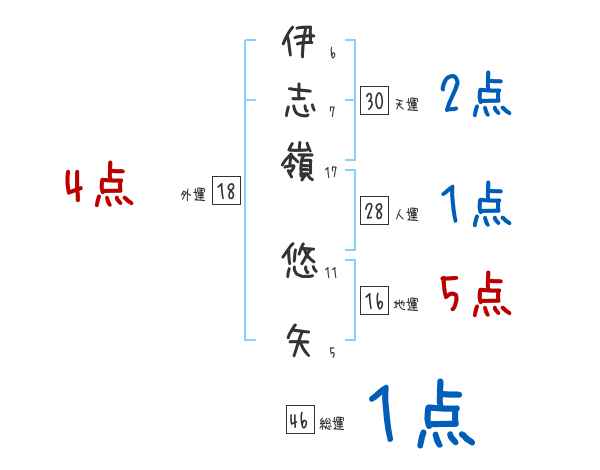 外運![]() | 伊志嶺悠矢さんの外運は18画の4つ星!情熱的で剛気。忍耐力があり信頼される。 生活面を象徴する運勢です。外部から受ける影響力を表し、結婚運、家庭運や職場、環境への順応性を表します。 |