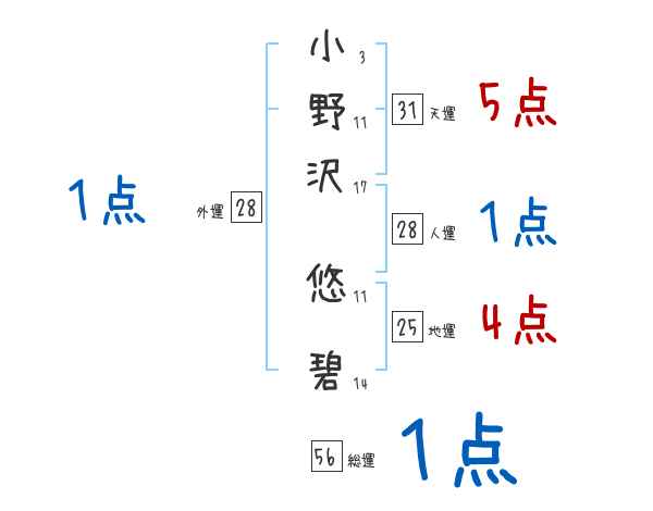 外運![]() | 小野沢悠碧さんの外運は28画の1つ星!家庭環境に注意。スポーツで活躍できる能力があるかも。 生活面を象徴する運勢です。外部から受ける影響力を表し、結婚運、家庭運や職場、環境への順応性を表します。 |