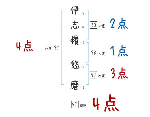 伊志嶺悠磨さんの画数の鑑定結果