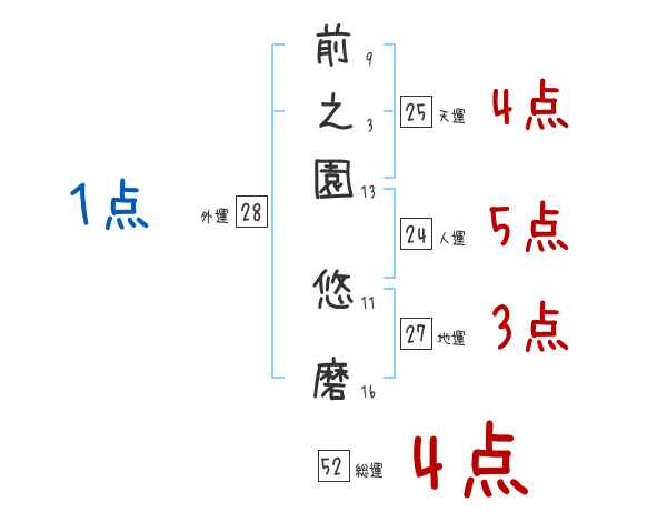 前之園悠磨さんの画数の鑑定結果