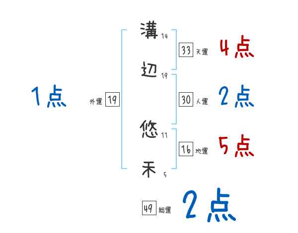 溝辺悠禾さんの画数の鑑定結果