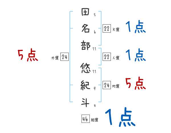 田名部悠紀斗さんの外運は24画の5つ星