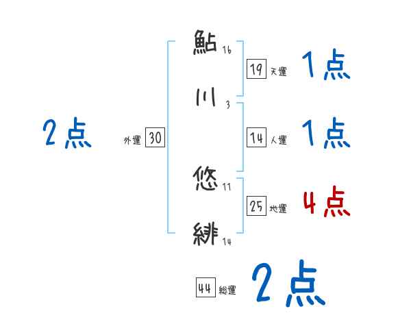 鮎川悠緋さんの画数の鑑定結果