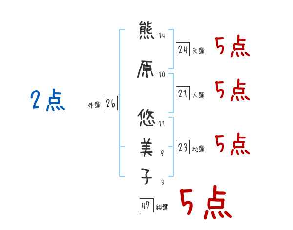 熊原悠美子さんの画数の鑑定結果